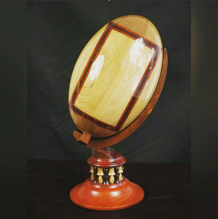 Voici mon ballon de rugby sur socle, réalisé pour le concours du Meilleur Apprenti de France, option tournage sur bois, dont j'ai été lauréat et récompensé par une médaille d'or nationale en 2016.